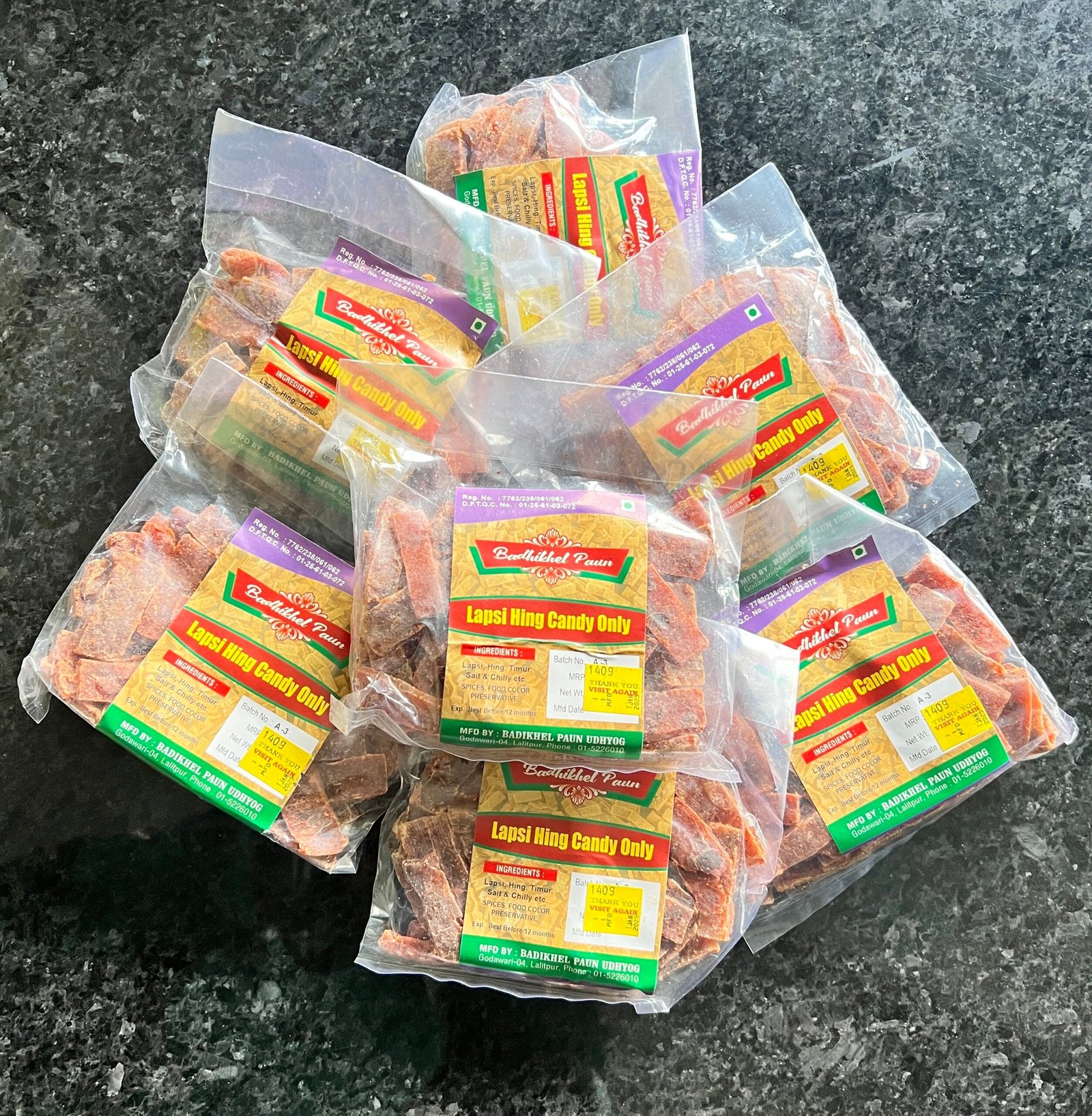 Prepared by cooking the lapsi fruit into a soft paste and mixing it with sugar, salt, chili powder, and sometimes spices like ginger or cumin, lapsi titaura comes in various textures—sticky, chewy, or powdered. Its unique taste makes it a popular snack, often enjoyed on its own or shared among friends as a nostalgic treat.